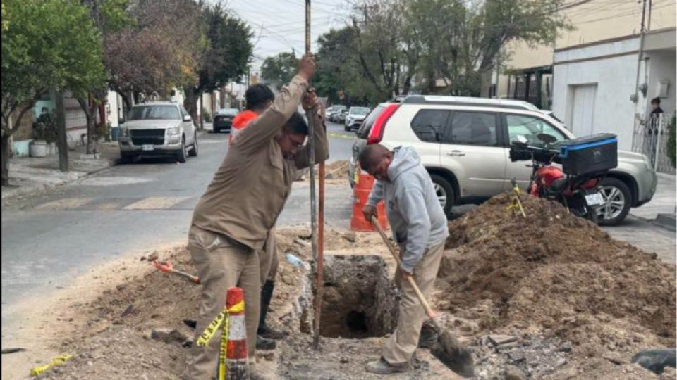 En el municipio de García, cuadrillas de Agua y Drenaje trabajan en la reparación de una tubería rota en la colonia José Páez. De acuerdo con el reporte oficial, se estima que el suministro quede normalizado alrededor de las 16:00 horas.