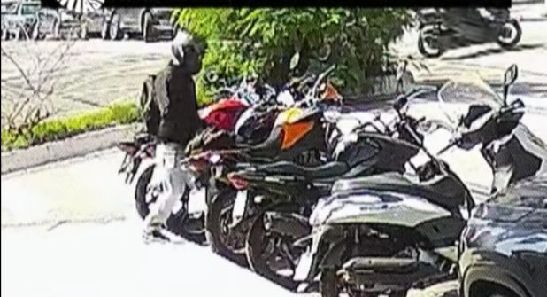 En la grabación se observa cómo el sospechoso llega tranquilamente conduciendo su propio vehículo de dos ruedas.