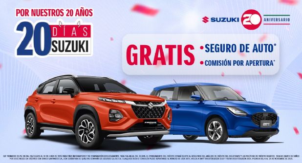 Veinte años se dicen fácil, pero en el camino se recorren miles de historias. Desde su llegada a México, SUZUKI ha acompañado a conductores que buscan algo más que un auto: una experiencia confiable, divertida y cercana. Hoy, la marca celebra dos décadas de confianza en movimiento y lo hace con una invitación muy especial: “20 Días de SUZUKI”, una promoción para agradecer la preferencia de quienes han sido parte de este viaje.