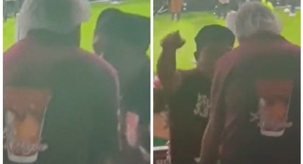 Los aficionados que presenciaron el hecho ayudaron a avivar el fuego del enojo entre ambos personajes, ya que les estuvieron gritando: “Ya bésense”, “Ya dense en su m*dre”, “No te metas con mis vasos”.