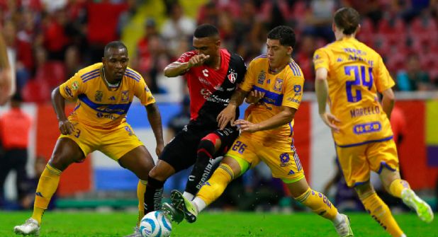 El partido entre Tigres y Atlas inició con ambos planteles repartiendo el dominio de balón.
