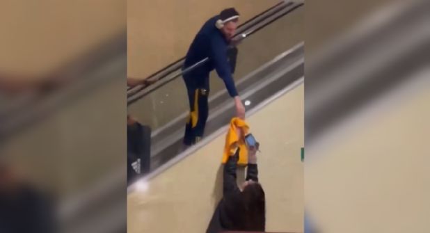 En el metraje, se observa cómo Gignac intenta alcanzar la playera universitaria y un marcador para firmárla, pero la distancia generada por la escalera eléctrica dificulta su alcance. Con grandes audífonos puestos, Gignac trata de estirarse para tomar la playera, pero reacciona rápidamente al percatarse de un posible choque con el techo, siendo asistido para evitar el accidente.