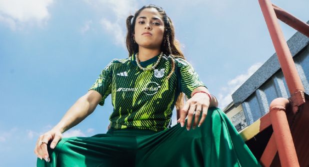 El nuevo diseño, exhibe un patrón de brochazos orgánicos en verde bandera y verde limón, con cintas blancas a los costados. Confeccionado por la marca alemana Adidas, el jersey utiliza la tecnología Aeroready para ofrecer comodidad y libertad de movimiento a las jugadoras.