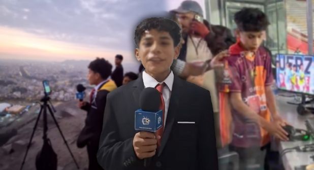 - La “cabina” improvisada: Desde el cerro, el joven narrador improvisó su transmisión utilizando solo un smartphone, un trípode y su convicción.