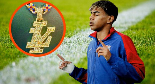 Fue el cantante dominicano Alfa El Jefe quien reveló en Instagram que Lamine Yamal gastó 400 mil dólares (alrededor de 7.5 millones de pesos) en su nuevo accesorio mandado a hacer a la joyería Tayia Diamonds. En la imagen se ve un collar de oro con brillantes azules y rojos alusivos al Barcelona y las iniciales de su nombre sobrepuestas (LY). Hasta el momento no se ha visto al crack blaugrana con su nueva adquisición.