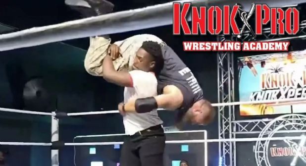 Captado en vivo por la plataforma de streaming Kick, en el video se puede ver al hijo de la leyenda de UFC entrando al ring en la velada de Knokx Pro Wrestling, para inmediatamente después abalanzarse sobre el luchador Stuart Smith, también conocido como Syko Stu, levantarlo por encima de su cabeza y luego arrojarlo con fuerza contra la lona.