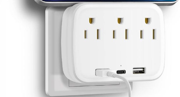 Se trata de un multicontacto de escritorio en un formato compacto y portátil. Viene con 3 tomacorrientes de CA ampliamente espaciados y 3 puertos de carga USB. Vale 239 pesos.