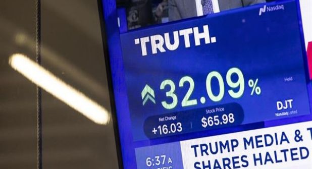 Trump Media & Technology Group (TMTG), la empres matriz de la red social Truth Social, cotizaba por primera vez en el índice Nasdaq bajo el símbolo DJT -las iniciales de Trump- con un precio de 70 dólares por acción, lo que le da un valor de mercado de unos 9 mil 500 millones de dólares.