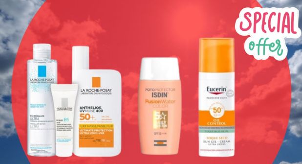 Tiene un precio irresistible de 479.25 pesos mexicanos, incluye un set de protección solar con un agua micelar ultra, un Hyalu B5 y un Anthelios UV, tienen efecto de larga duración, es resistente al agua, son ideales para piel normal y seca, la presentación del bloqueador es en crema y es una de las marcas recomendadas por dermatólogos.