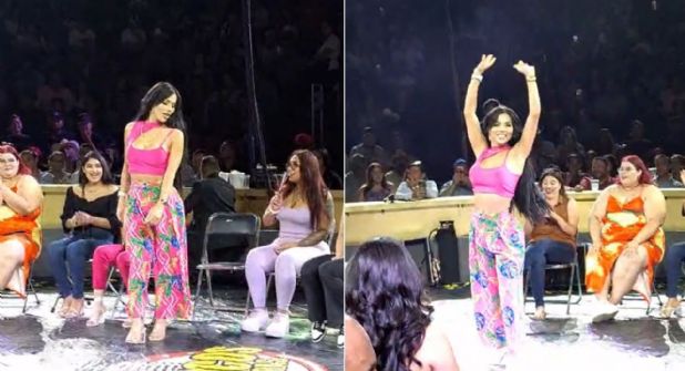 Sin embargo, esta vez, durante su presentación en Hermosillo, un incidente causó revuelo. Una mujer, decidió subir al escenario y, para sorpresa de todos, levantó su blusa, mostrando su busto ante el público. Este inesperado acto desató una reacción de sorpresa y diversión entre los asistentes, quienes aplaudieron y rieron ante la situación.