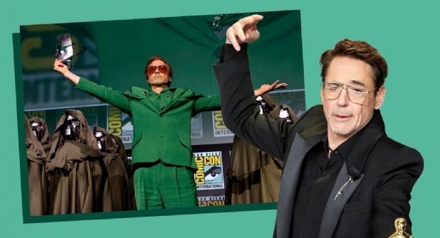 Downey Jr. hizo su aparición en el escenario del Hall H de la Convención de San Diego con una máscara que le tapaba el rostro y un atuendo de color verde. En cuanto descubrió su cara, extendió sus brazos a los lados y dijo lo siguiente: “Nueva máscara, misma tarea”.