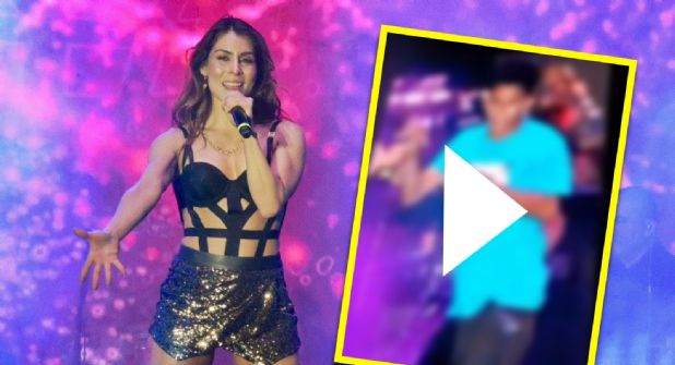 El show se estaba realizando con normalidad, cuando de la nada, un hombre se sube al escenario y trata de arrebatarle el micrófono.
