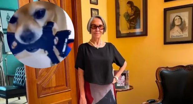De acuerdo con las imágenes, se puede observar como la actriz le está dando un muñeco de Carlos Villagrán, conocido como Kiko a su pequeño perrito, el cual se muestra muy contento, pues aparece corriendo y mordisqueando el peluche, mientras Florinda Meza aparece muy sonriente por esta situación.