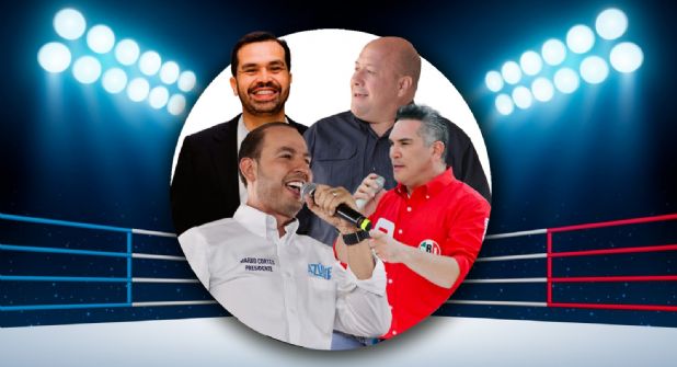 La función estelar se la llevan dos personajes famosos, en una esquina se encuentra “Alito” Moreno y en la otra Marko “El Avorazado” Cortés, que, solito tropezó y se fue a la lona, incluso, solito se quitó la máscara.