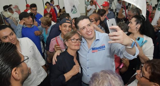 "Muy contento, con mucha alegría, ya listos para votar el 2 de junio, la verdad yo, los vecinos me lo dicen, me lo confirman todos los días, no nada más vamos a ganar, sino vamos a arrasar en la Benito Juárez", señaló.