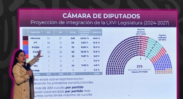 La Dra. Casar definió claramente qué es la sobrerrepresentación: "De manera clara es el número o porcentaje de diputados en exceso que se le da a un partido o coalición por encima del porcentaje de votos en las urnas". Utilizó un ejemplo para ilustrar su punto: "Si saco 10 por ciento de votos, me deben dar 10 por ciento de diputados; si me dan 12 o 14 es más de los que deben repartir".
