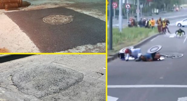 Baches, coladeras y riesgos en la pista