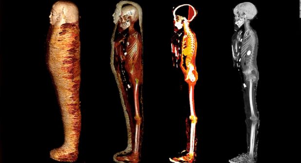 En este caso, científicos egipcios utilizaron la tomografía computerizada (TC) para "desenvolver digitalmente" la momia intacta y nunca abierta de un adolescente de 2.300 años de edad y alto nivel socioeconómico.