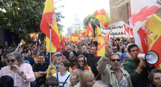 En la concentración de este domingo en Madrid, la más numerosa de las realizadas en diversos lugares de España como Barcelona, Sevilla o Valencia, los manifestantes gritaban consignas como "¡Viva España!", "¡Sánchez Traidor!" o “Puigdemont, a prisión”, portando carteles en los que se podía leer: "España se vende".