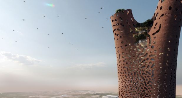 La edificación estará coronada por cinco apéndices truncados, similares al arranque de las ramas de un árbol, por los cuales aflora la vegetación que vivirá en simbiosis con la edificación, y en los que se instalarán un helipuerto y un mirador panorámico, según se observa en las imágenes representativas del proyecto, de acuerdo con EFE.