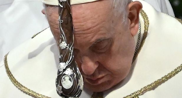 La ceremonia comenzó a oscuras con una solemne procesión que recorrió la imponente Basílica de San Padre, a la que el Pontífice llegó en silla de ruedas.