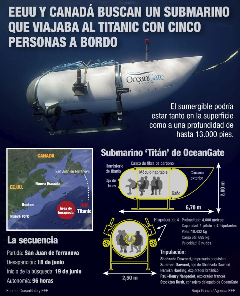 Cabe destacar que más embarcaciones de alta tecnología y personal médico continúan la búsqueda del Titán, pues el oxígeno del aparato podría haberse acabado, según los cálculos que ha estado ofreciendo la Guardia Costera.
