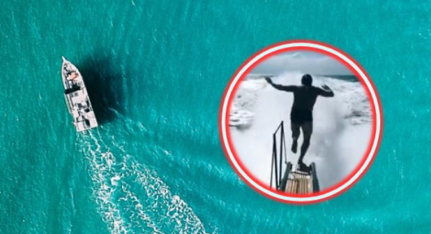 Se trata de una actividad acuática altamente riesgosa, en la que los usuarios se graban cuando saltan de la lancha a pesar del rápido movimiento de esta.