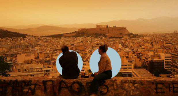 Los fuertes vientos del sur arrastran el polvo del desierto del Sáhara hacia la zona meridional del país, aunque las nubes anaranjadas han llegado hoy incluso hasta la ciudad de Salónica, en el norte del país.