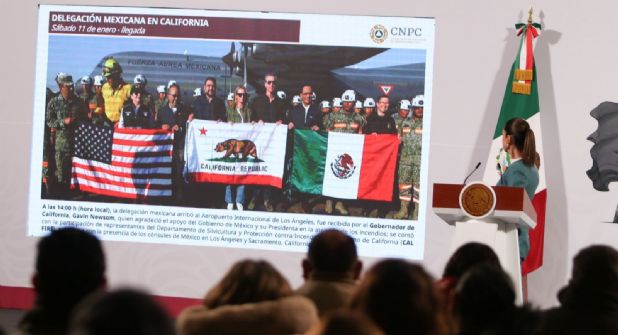 “El día de hoy, Presidenta, se prevé un despliegue para realizar labores de búsqueda y rescate en la infraestructura y viviendas afectadas. Asimismo, las brigadas de la Conafor, que están avanzando en la construcción, en la ampliación de brechas cortafuego, esto se hace con motosierras, con herramienta manual y, asimismo, haciendo la apertura de nuevas brechas. Estamos trabajando en unidad, Presidenta, conforme a sus instrucciones. Es una coordinación absoluta con el gobierno de California a favor de la población”, indicó.