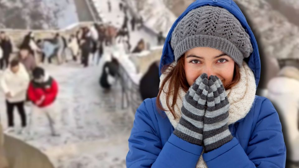 Videos y fotografías difundidas en redes sociales muestran a visitantes deslizándose involuntariamente por secciones congeladas del muro, una escena que ha sido descrita como la “pista de hielo más larga de Asia”.