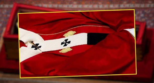 Representa la dignidad, santidad y la autoridad del Papa; en esta ocasión se le añadió un ribete dorado.