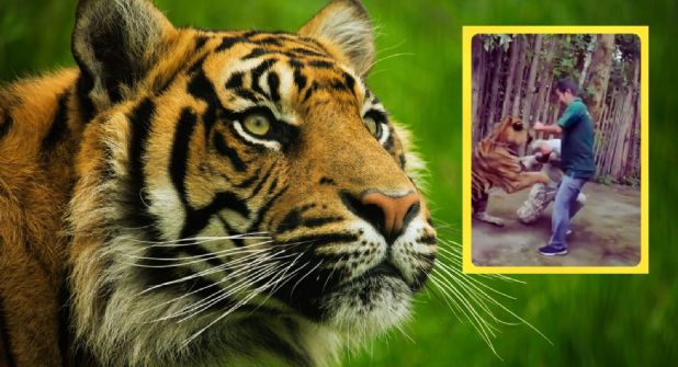 En las imágenes se observa al visitante posando sonriente junto al animal, acompañado por un entrenador que sostiene un palo para controlar al tigre. Mientras se preparan para tomarse una fotografía, el felino reacciona de forma repentina y violenta, lanzándose contra el turista.