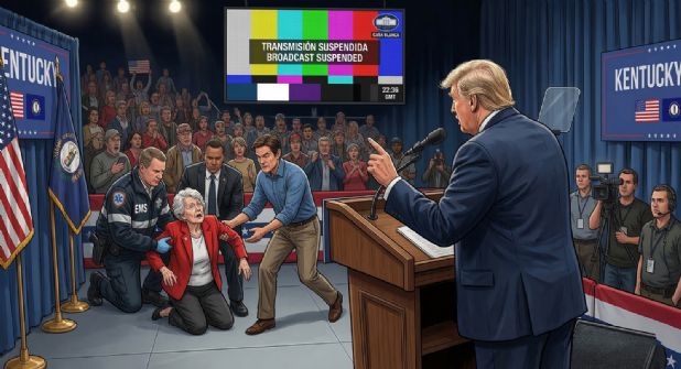 La jornada en Kentucky tomó un giro inesperado cuando un desmayo en discurso de Donald Trump captó la atención de todos los asistentes y de las cámaras que transmitían el evento en vivo. Mientras el actual presidente de Estados Unidos se dirigía a sus simpatizantes, una mujer de la tercera edad que se encontraba en las gradas justo detrás del mandatario comenzó a sentirse indispuesta, colapsando súbitamente ante la mirada de miles de espectadores.