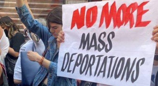 Las organizaciones Apoyo a Migrantes Venezolanos, Comunidad en Retorno y ODA se manifestaron en el Centro Histórico de la Ciudad de México para exigir a los presidentes de Estados Unidos, Joe Biden, y de México, Andrés Manuel López Obrador, que paren las deportaciones de personas migrantes.
