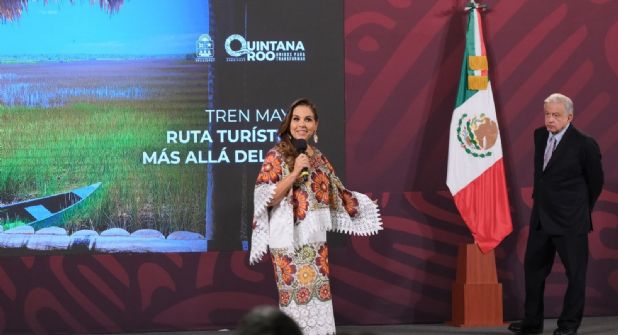 Las vías de la transformación del Tren Maya, traerán a Quintana Roo la “Ruta Turística más allá del Sol”, anunció la gobernadora Mara Lezama durante la conferencia matutina del presidente de México, Andrés Manuel López Obrador, un proyecto que forma parte del tramo 4 y que además de mejorar la conectividad con el municipio de Lázaro Cárdenas permite impulsar el desarrollo justo y equitativo de la entidad y contribuir a la transformación de México.