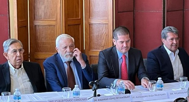 En la conferencia de prensa, López Betancourt estuvo acompañado por Cuauhtémoc Cárdenas y Ricardo Monreal.