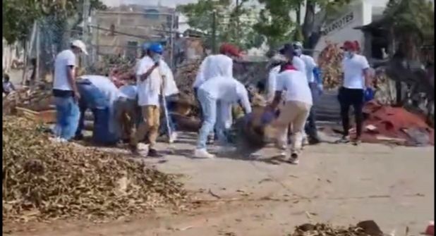 Sin precisar desde cuándo los miembros del programa están haciendo limpieza en las áreas afectadas, ni en que zonas en específico, agregó un par de videos donde se ve a muchachos y muchachas barriendo, cargando ramas secas, juntando hojas y cargando aparentes escombros.