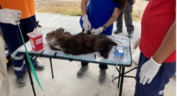 Presentaba lesiones en la pata derecha, laceraciones en el costado derecho, sarna, pulgas, desnutrición y deshidratación, por lo que se le brindó la atención que requería.