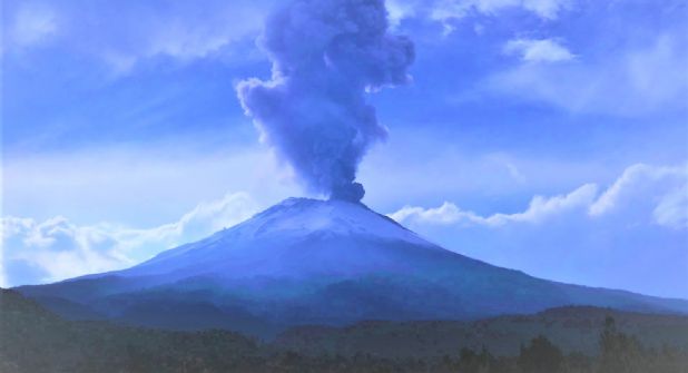 Video de exhalación del Popocatépetl desde un avión