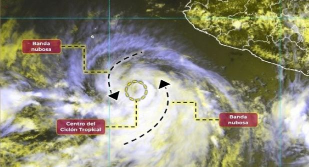 Destacó que las bandas nubosas de este ciclón tropical ocasionarán lluvias muy fuertes en Colima, Guerrero, Jalisco y Michoacán, lluvias fuertes en Nayarit y rachas de viento de 40 a 50 kilómetros por hora con oleaje de 1 a 3 metros de altura en los litorales de Colima, Jalisco, Michoacán y el occidente de Guerrero.