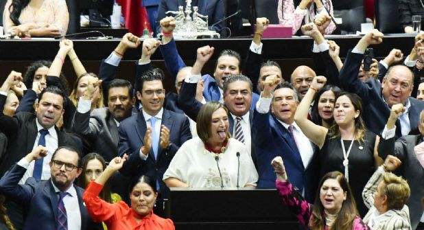 Ante los insultos de los morenistas, subieron a arropar a Gálvez Ruiz las bancadas del PAN, del Partido Revolucionario Institucional (PRI) y del Partido de la Revolución Democrática (PRD), cuyos líderes parlamentarios también la vitorearon.