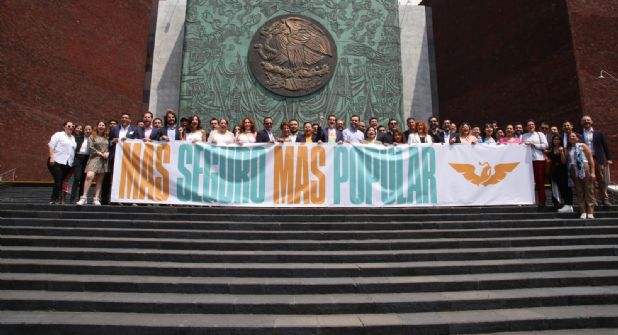 Con una manta extendida frente a la fachada principal del recinto, los integrantes de la fracción, encabezados por el diputado Salomón Chertorivski, se manifestaron al grito de “¡más seguro, más popular!”.