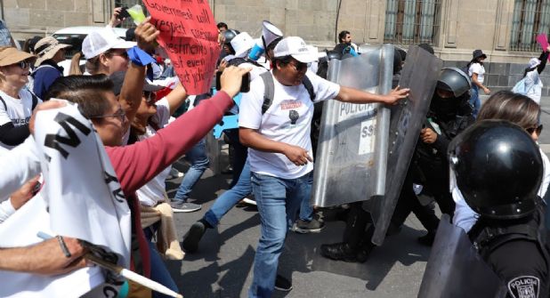 Durante algunos minutos, los ánimos se caldearon a grado tal que los trabajadores comenzaron a lanzar botellas con agua, motivo por el cual, los uniformados, ahora sí utilizaron polvo extintor y no gas lacrimógeno, para dispersarlos.