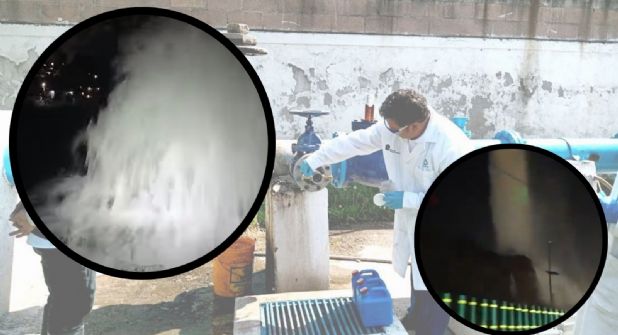 La fuga, de acuerdo con las autoridades, se debió a la ruptura de una válvula expulsora de aire de dicho sistema, el cual tiene poco de habérsele dado mantenimiento.