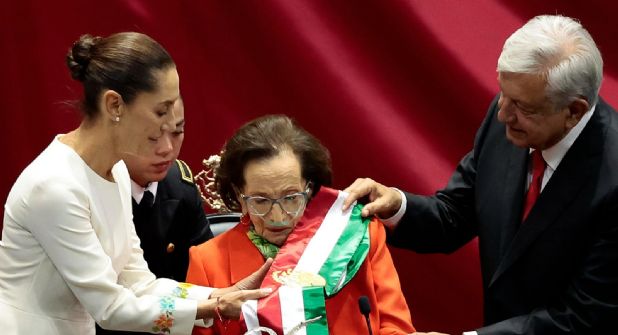 Sánchez Cordero Dávila, que lucía visiblemente conmovida, externó que Martínez fue un ícono feminista, y en su momento fue galardonada con la Medalla Belisario Domínguez, que ella misma le entregó hace tres años, aunado a que fue la primera senadora electa por la oposición.