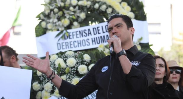 “Estamos hoy aquí, enfrente de la Comisión Nacional de Derechos Humanos en este país, y hoy venimos para simbólicamente entregar y dejar arreglos florales, porque también venimos, no simbólicamente, sino literalmente a decir que descanse en paz, la defensa de los derechos humanos por parte de la CNDH”, señaló.