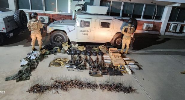 Derivado de trabajos de campo y gabinete, se generaron los recorridos de vigilancia aérea con unidades aeronavales de ala fija y móvil, así como los movimientos terrestres que efectúa personal de Infantería de Marina y Operaciones Especiales, resultando en la localización de armamento de uso exclusivo de las fuerzas armadas, cartuchos de diferentes calibres, cargadores y equipo táctico, lo anterior en el marco de las operaciones que realiza la Armada de México en coadyuvancia con instituciones de seguridad pública en el estado de Sinaloa.