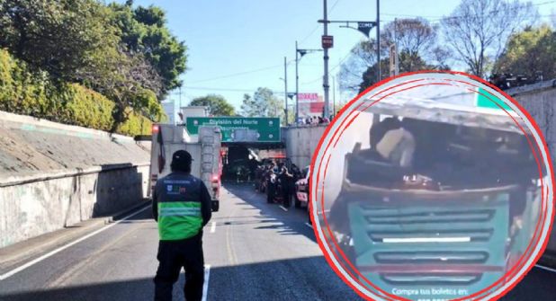El vehículo transitaba en dirección al oriente y llegando al cruce con la Avenida Insurgentes en la Ciudad de México e intentar cruzar por debajo del puente vehicular, el chofer no calculó el tamaño y voló todo el techo de la unidad.