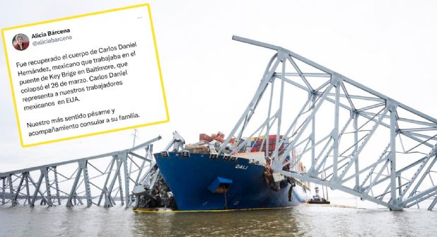 La secretaria de Relaciones Exteriores, Alicia Bárcena, dio a conocer que fue recuperado en el Puente de Baltimore, otro cuerpo de un trabajador, que pertenece a un mexicano.