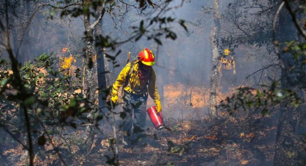 Las y los brigadistas pertenecen a los tres niveles de gobierno, federal, estatal y municipal y también se hacen ayudar por helicópteros para llegar a las zonas donde es más difícil el acceso debido al fuego.